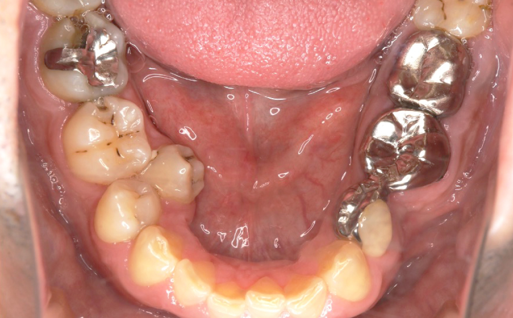 銀歯が目立つ